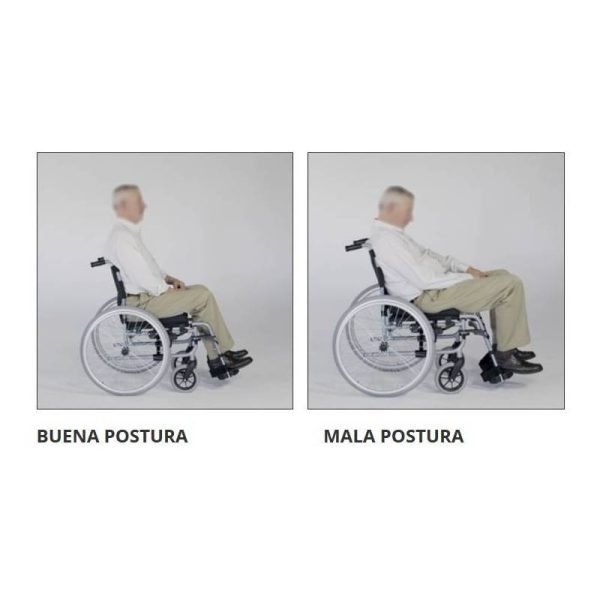- Mantener la posición sentada correcta con el fin de evitar la adopción de una mala postura al deslizarse hacia adelante y la formación de úlceras por presión debido al cizallamiento de la piel.